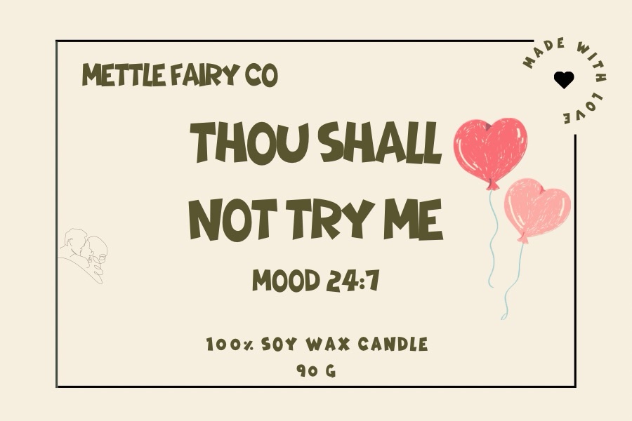 Looking for the perfect gift to sweep your special someone off their feet? Our “Thou Shall Not Try Me! Mood 24×7!” candle is more than just a statement piece—it’s an expression of romance and personality wrapped in luxurious fragrance. Hand-poured with organic soy wax and infused with captivating romantic scents, this candle sets the stage for intimate evenings or relaxing nights.